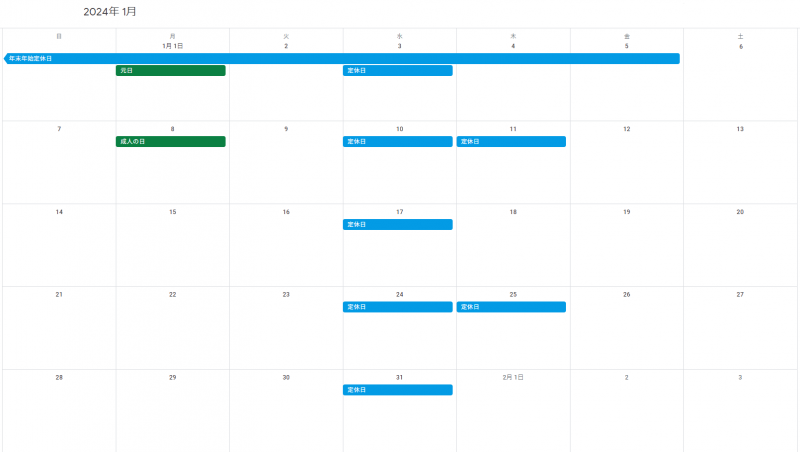 1月の営業日についてご案内いたします。