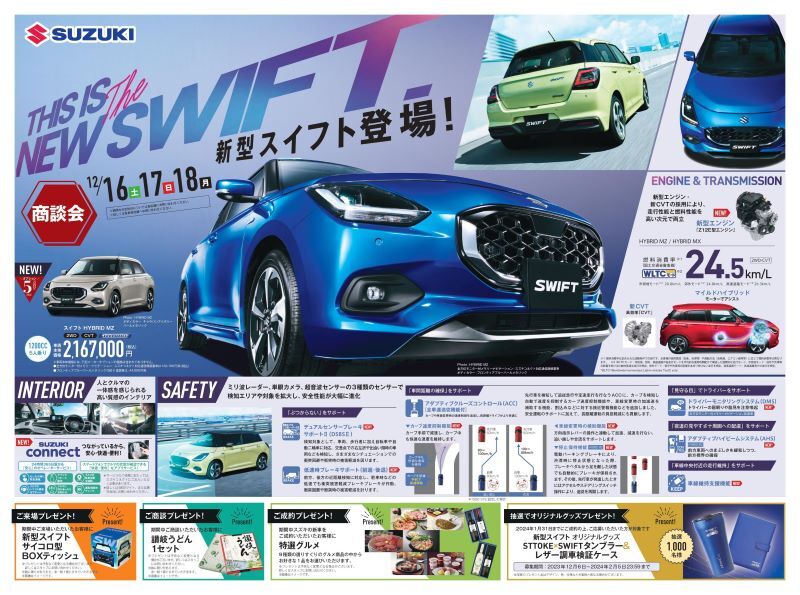期間中にスズキの新車をご成約頂いたお客様には豪華なプレゼントをご用意しております♪